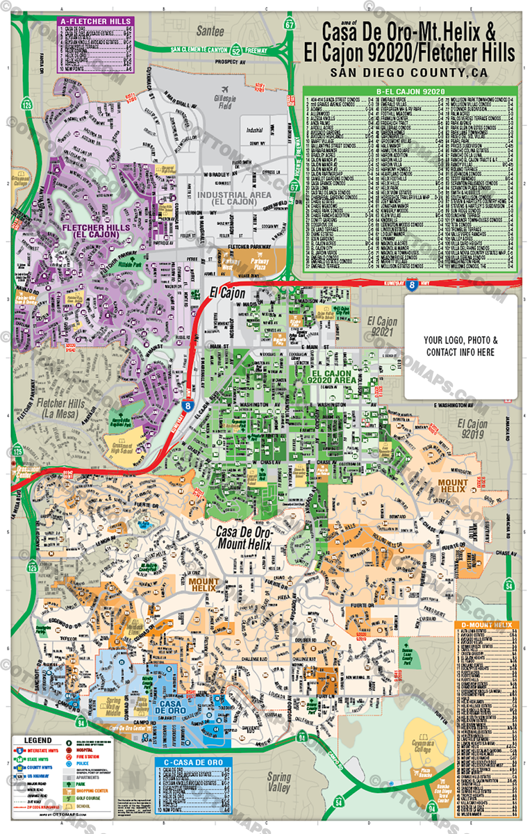 Casa De Oro Mt Helix Map, with Fletcher Hills and El Cajon 92020
