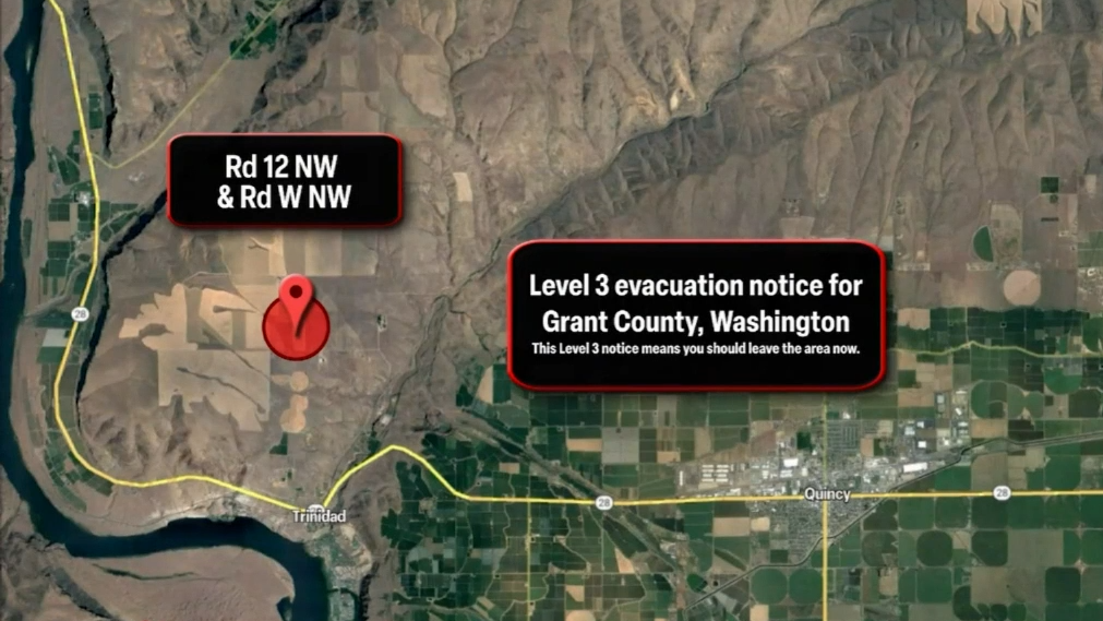 Level 3 evacuation issued by Grant County for wildfire near Quincy