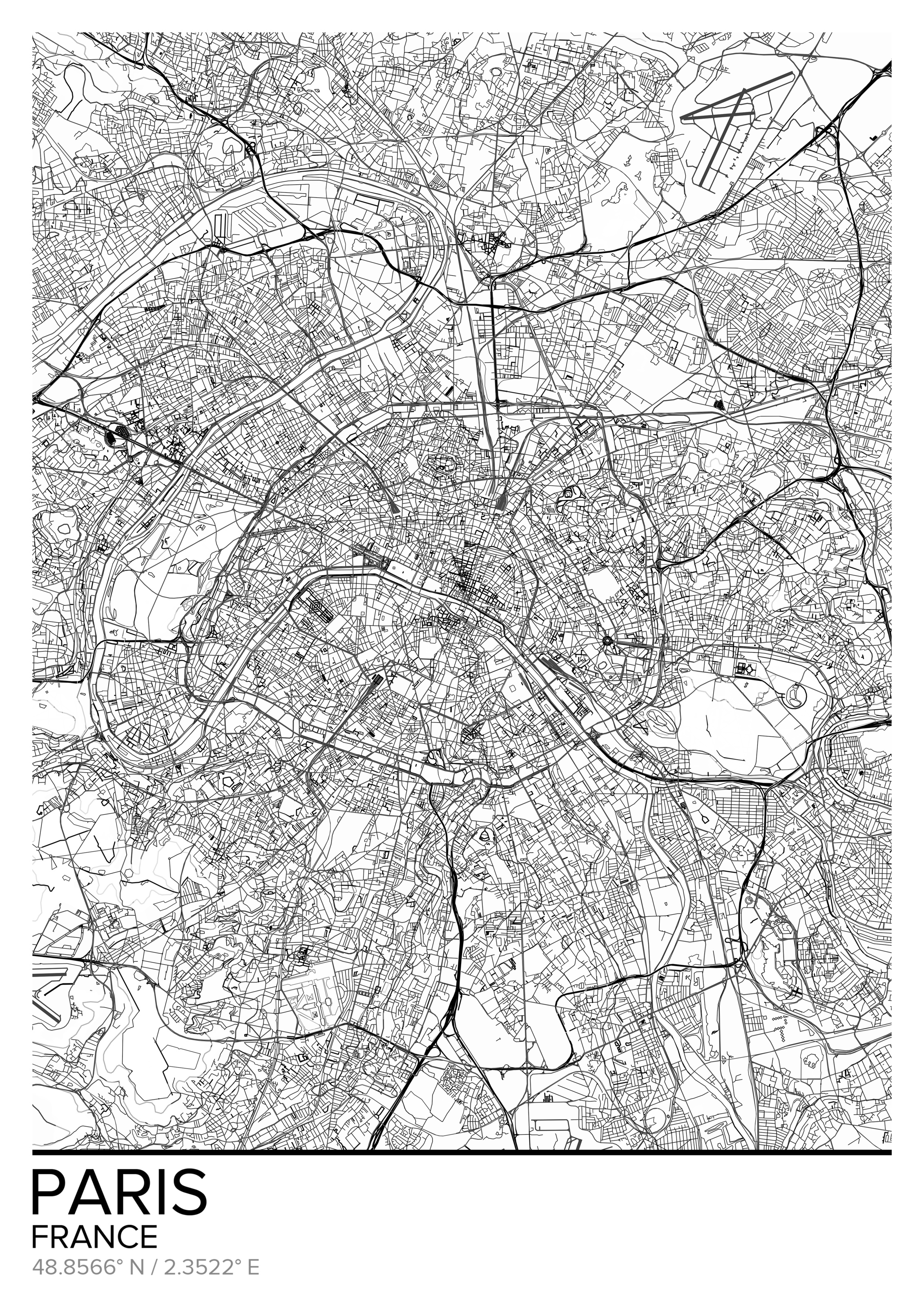 Amazon.com: Paris City Downtown Map Wall Art Paris Street Map